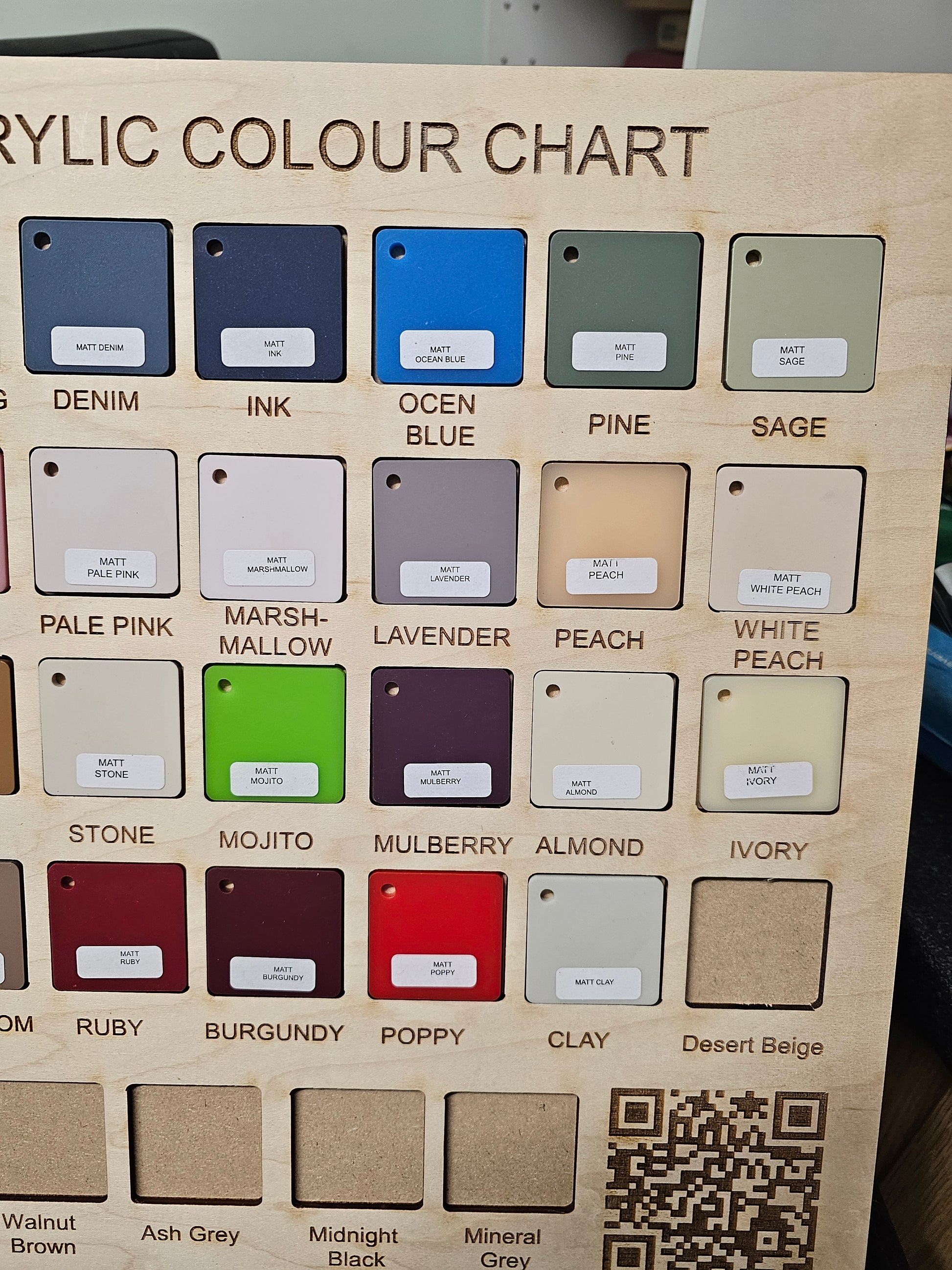 Available in a large selection of colours in our premium 3mm matt acrylic