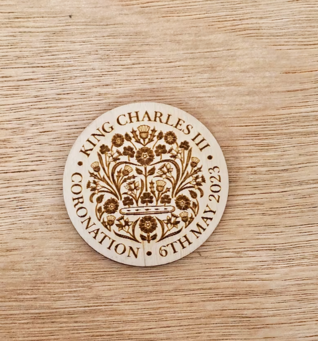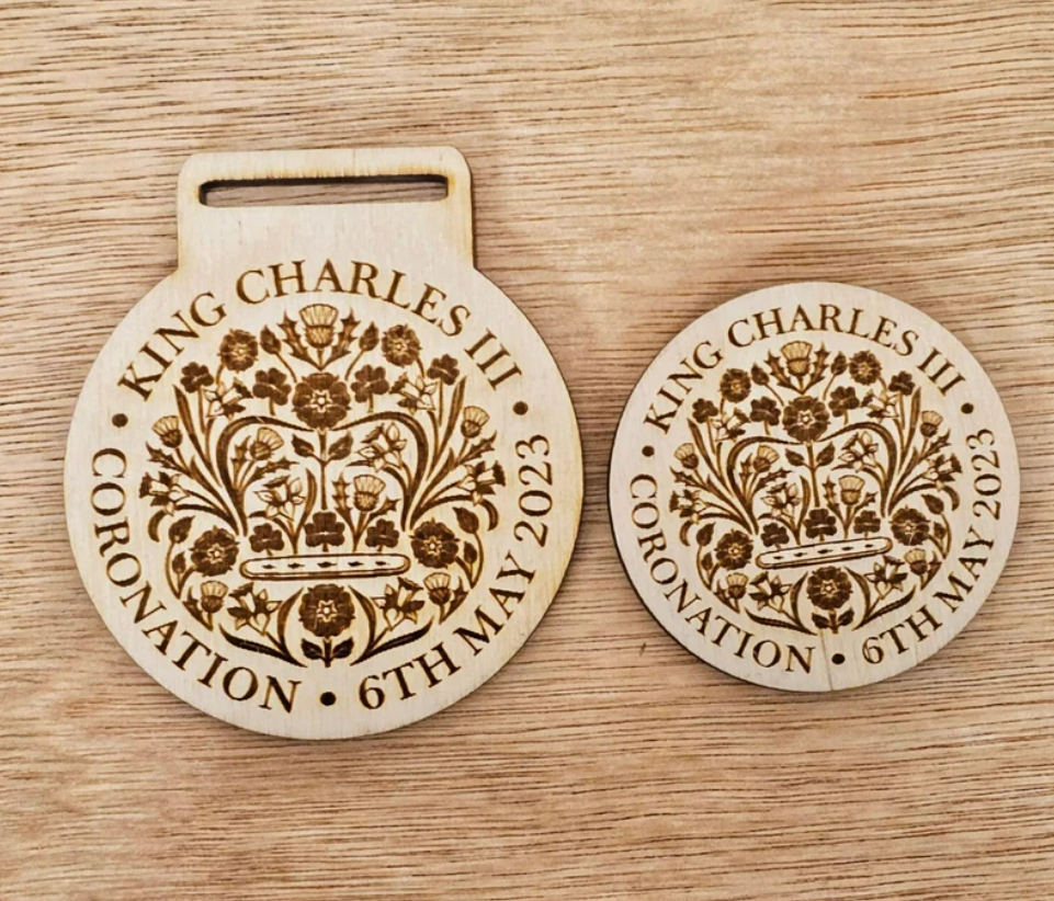 Coronation Medal for King Charles III, Keepsake Royal Medal Commemorative Wooden Engraved medallion May 2023