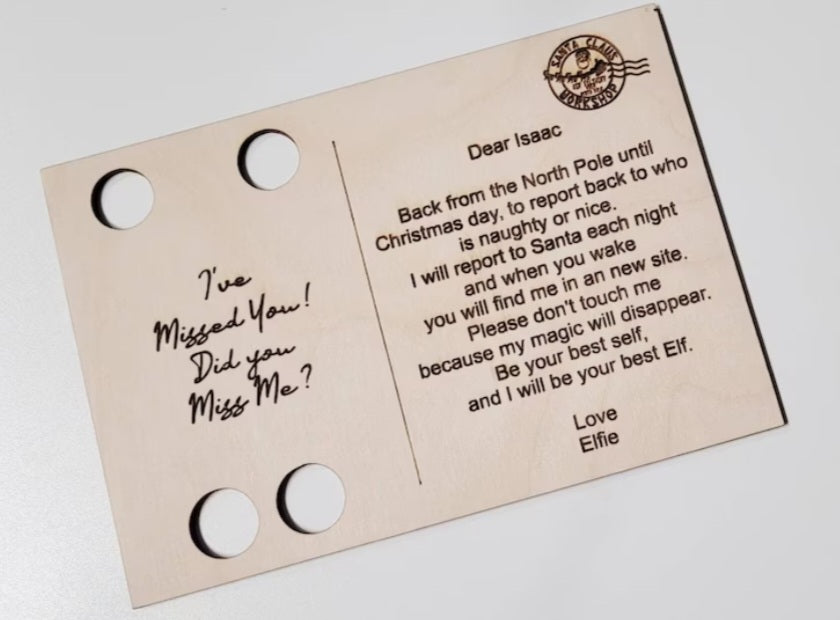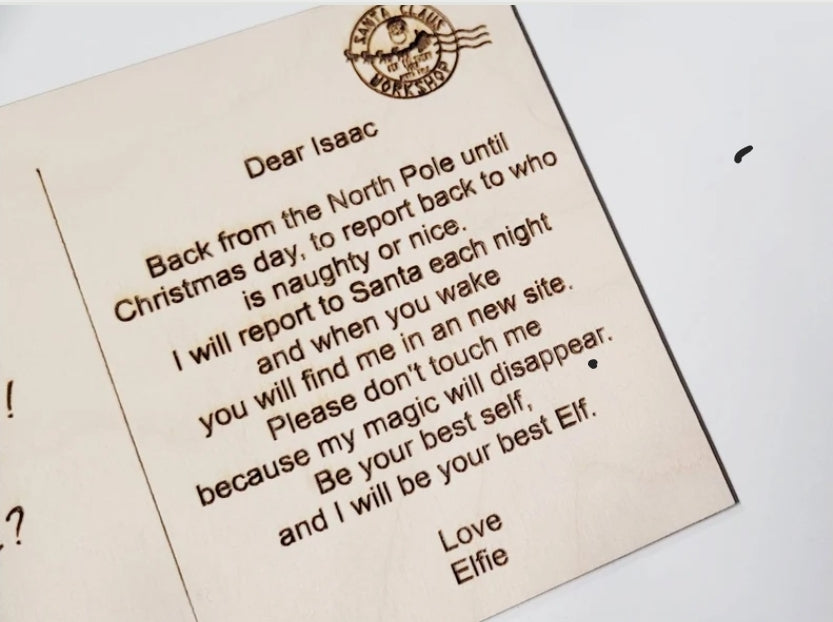 Personalised with elf's name and child/children's name.