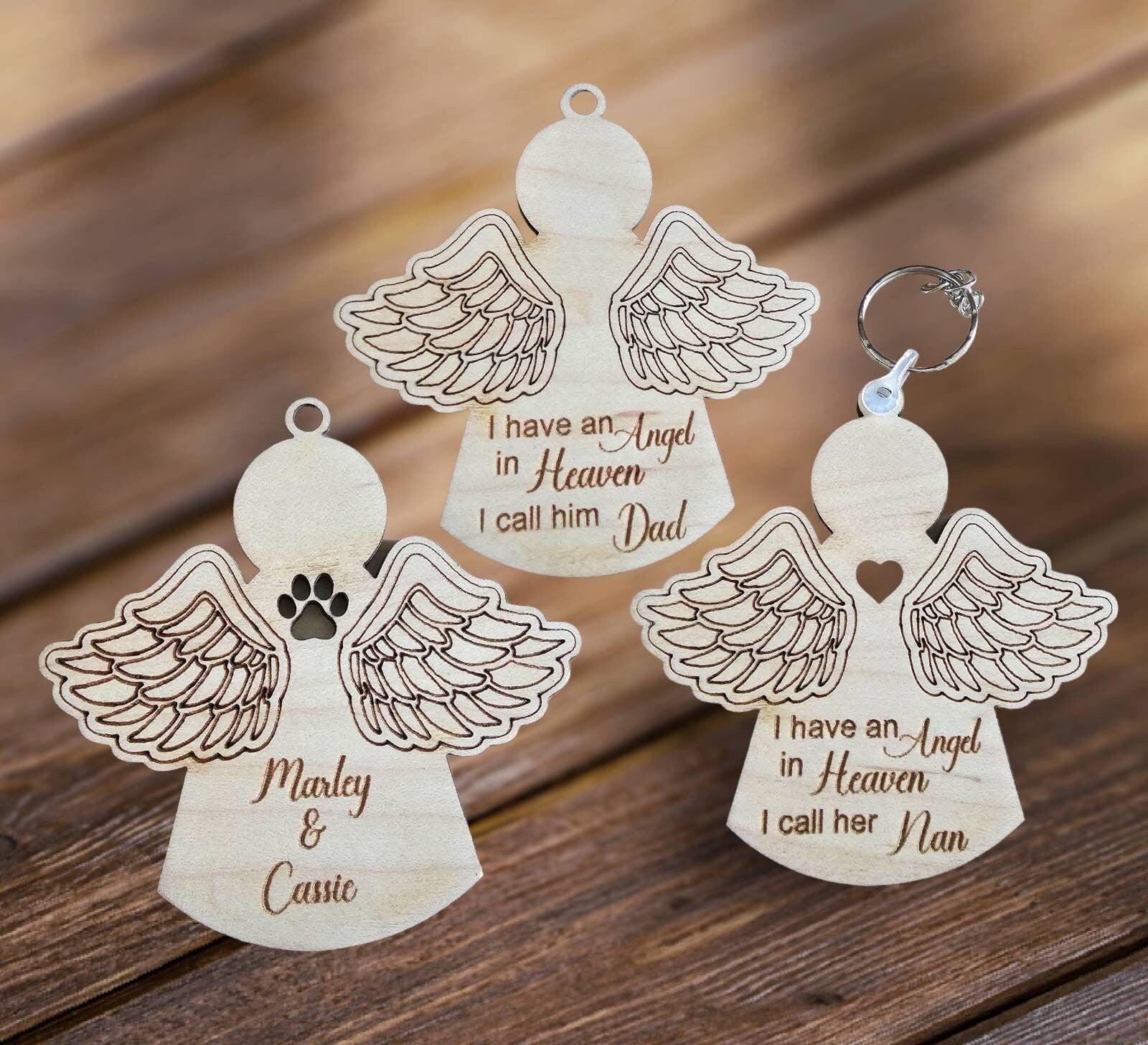 Personalised angel keyring, memorial gift, pet memorial, angel keyring, Personalised keyring, wooden keyring
