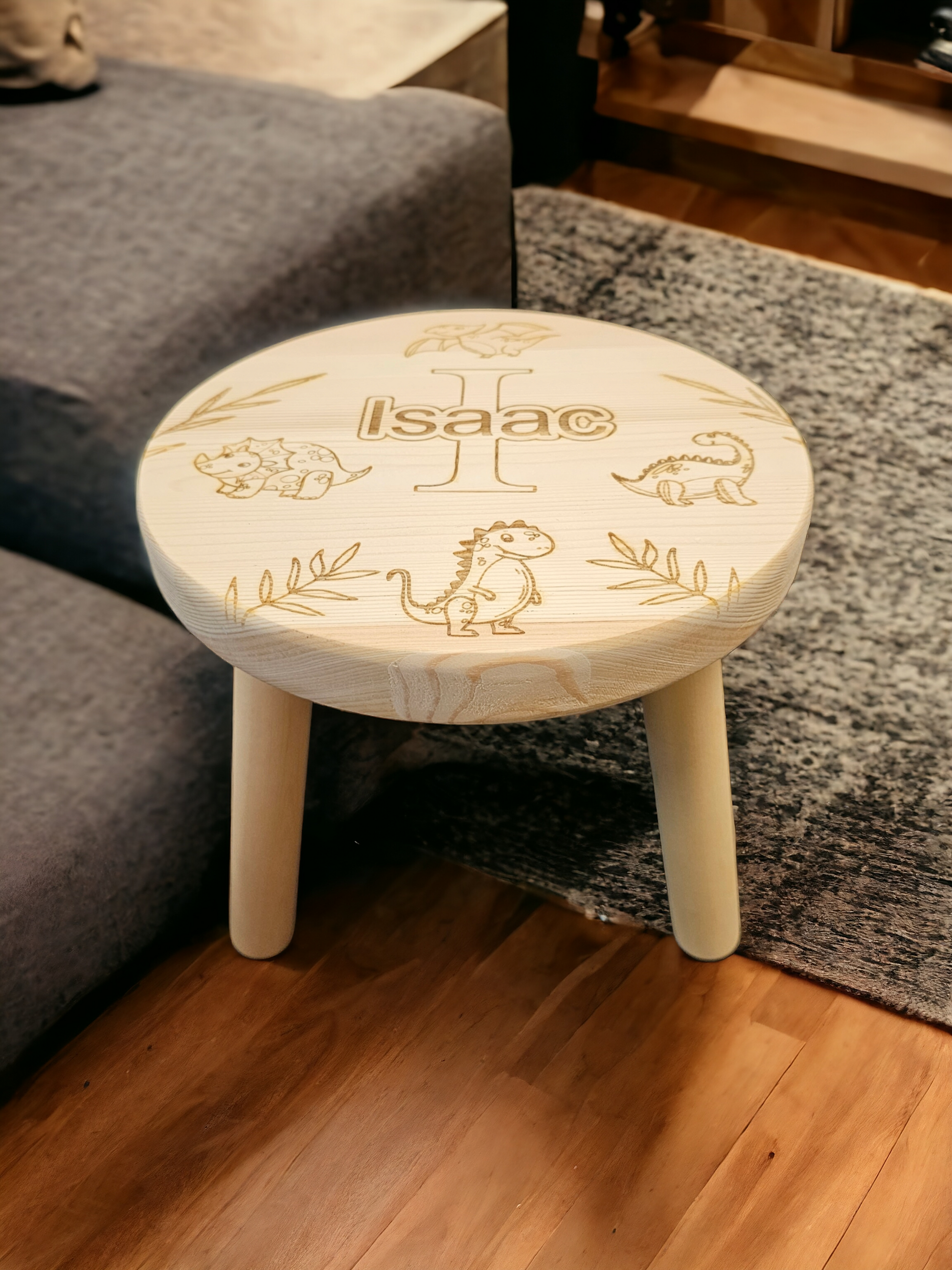 The stool is made for a gorgeous high quality beech, laser engraved with name and design