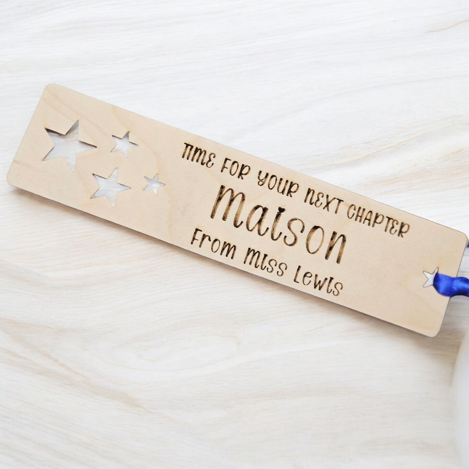 Personalised leavers bookmarks time for your next chapter. End of term gifts